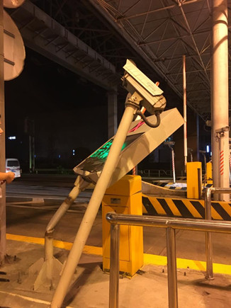 7月5日22點(diǎn)03分,機(jī)電設(shè)備維養(yǎng)中心接到臺(tái)州收費(fèi)所當(dāng)班班長(zhǎng)小馬電話,稱該所ETC入口綜合顯示屏及抓拍攝像頭被一輛大客車撞彎,事故還導(dǎo)致出口欄桿不能正常工作,影響了出口車輛正常通行。