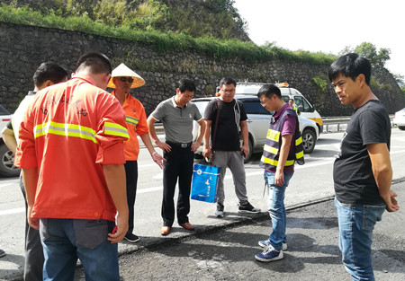 10月10日,集團(tuán)總工程師江輝帶領(lǐng)工程養(yǎng)護(hù)部人員到臨海南匝道病害現(xiàn)場(chǎng)檢查。
