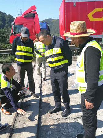 綜合督查組成員趕到養(yǎng)護(hù)攻堅(jiān)項(xiàng)目施工現(xiàn)場,開始了當(dāng)天的督導(dǎo)、協(xié)調(diào)工作,當(dāng)場指出發(fā)現(xiàn)的問題,提出整改意見。