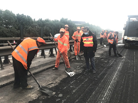 12月4日,難得的晴好天氣,甬臺溫高速公路臺州段一期路面專項(xiàng)養(yǎng)護(hù)攤鋪現(xiàn)場,工人緊張而忙碌作業(yè)。施工一旁,另有三位身著反光背心、頭戴帽子、腳穿布鞋的人員正目不轉(zhuǎn)睛地注視著攤鋪機(jī)作業(yè),時不時指點(diǎn)工作,他們是集團(tuán)路面專項(xiàng)養(yǎng)護(hù)綜合督查組成員邵克、馮濟(jì)爐和葉榮江。