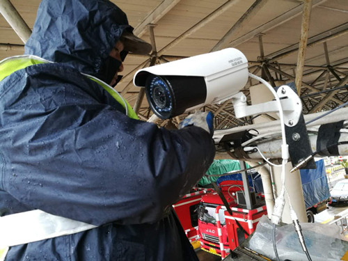 圖為工作人員在調(diào)試攝像頭 為趕在春運(yùn)前完成這項(xiàng)工作,中心全體隊(duì)員克服雨雪天氣帶來(lái)的強(qiáng)降溫等困難,兵分四路加班加點(diǎn),在各收費(fèi)站內(nèi)外廣場(chǎng)安裝固定云臺(tái)攝像機(jī),或半蹲著穿梭于頂棚下方狹隘空間鋪設(shè)線路,或冒雨來(lái)回奔波監(jiān)控室與車道間調(diào)試設(shè)備。經(jīng)過(guò)連續(xù)幾天的努力,四個(gè)站共計(jì)10臺(tái)“云視頻”監(jiān)控?cái)z像頭已全部安裝調(diào)試完畢。在這過(guò)程中,由于天氣惡劣,中心兩位隊(duì)員不幸感冒發(fā)燒,其中一位甚至還燒到了近40度,當(dāng)領(lǐng)導(dǎo)讓其回去好好休息時(shí),他只是輕描淡寫地說(shuō)了一句:“無(wú)大障,睡一覺(jué)就好?!?/span>