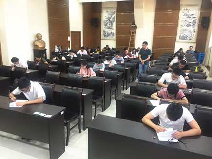 圖為考試現(xiàn)場(chǎng) 為杜絕考場(chǎng)舞弊行為,保證考試過程的嚴(yán)肅公平,現(xiàn)場(chǎng)筆試首次啟用監(jiān)控設(shè)備,考場(chǎng)均“現(xiàn)場(chǎng)直播”實(shí)時(shí)錄像??荚囘^程組織嚴(yán)密,工作有序,考場(chǎng)紀(jì)律嚴(yán)明,公司副總經(jīng)理董阿林到現(xiàn)場(chǎng)檢查考卷密封情況,親自監(jiān)督考風(fēng)考紀(jì)。 公司人力資源部、監(jiān)察室與征費(fèi)管理部負(fù)責(zé)人全程參與監(jiān)考。 陳一沁