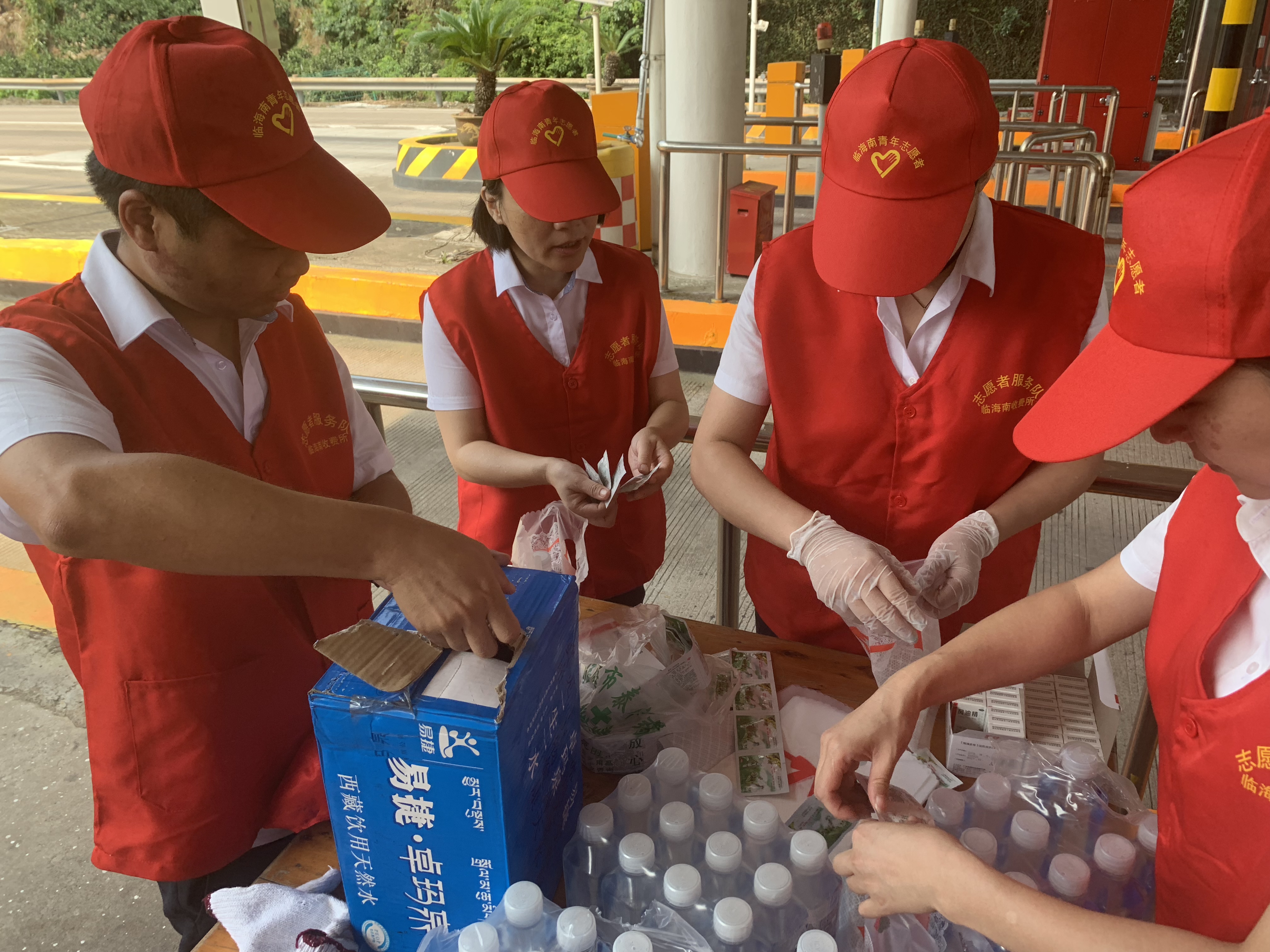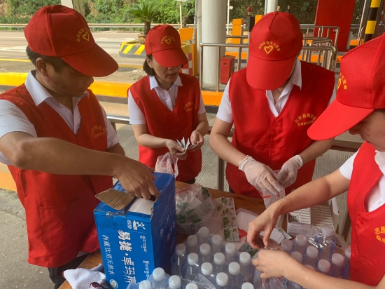 圖為志愿者在準(zhǔn)備防暑物品 “師傅,辛苦啦!這袋子里有礦泉水、風(fēng)油精、人丹一些防暑物品,您拿好,路上帶著以備不時(shí)之需!” “沒想到,你們收費(fèi)站還有這個(gè)服務(wù),這次我要出趟遠(yuǎn)門,說不定路上還真能用的上,謝謝呀!”一位接過禮品袋的老師傅連聲道謝。