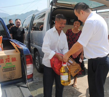 潘山頭村共有22戶困難戶,因時(shí)間關(guān)系,臺(tái)州收費(fèi)所黨支部一行走訪了其中3戶困難家庭,對(duì)于其他19戶困難家庭委托該村“兩委”領(lǐng)導(dǎo)代為慰問。每到一戶,支部書記王小勇都詳細(xì)詢問了解困難群眾的生活情況,勉勵(lì)他們積極面對(duì)生活,戰(zhàn)勝困難,同時(shí)為他們送去了中秋月餅、食用油、干果等慰問品及節(jié)日問候。