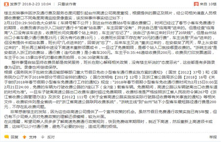 整個收費過程,未曾出現(xiàn)投訴人所說的亂收費和態(tài)度惡劣現(xiàn)象,黃智超始終以熱情的微笑面對司機,陳幸也是應(yīng)對問詰,保持禮貌,堅持原則,不急不躁地做好收費政策解釋工作。 目前,該事件在集團各部門的合力下,已妥善處理完畢。對此失實消息,辦公室也及時予以了有力回復(fù),在客觀澄清事情原委的基礎(chǔ)上,依法依規(guī)、有理有據(jù)地向社會公眾進一步宣傳收費政策,釋疑解惑。該貼在網(wǎng)絡(luò)論壇點率率已超過3千,網(wǎng)民評論都是一片倒地點贊支持高速集團的政策解釋。