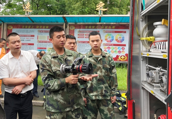圖為培訓(xùn)現(xiàn)場 活動現(xiàn)場,黃巖消防大隊官兵向參加活動的員工展示消防車上的消防裝備實物,講解裝備使用功能以及消防車基本構(gòu)造,耐心地解答員工提出的問題,并當場進行專業(yè)的消防水帶連接滅火演示。之后,臺州收費所員工開展消防水帶連接滅火演練,獲得黃巖消防大隊官兵的肯定,同時針對演練中存在的問題及不足給出專業(yè)性的指導(dǎo)意見。