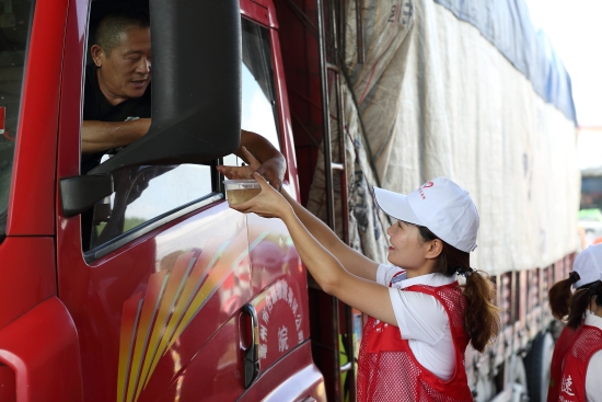 圖為志愿者給司乘遞上飲品 在送清涼的同時,志愿者們還溫馨提醒司機(jī)朋友們不要疲勞駕駛,高溫天氣中注意行車安全,并為不熟悉路況的司乘指引路線。此外,工作人員還在“便民小藥箱”中補(bǔ)充了防暑等應(yīng)急藥品,以應(yīng)對高溫中暑等突發(fā)狀況。 一杯杯清涼的飲品,幾句簡短而溫馨的交流,拉進(jìn)了志愿者們與司乘人員之間的距離,司乘人員的好評將整個活動現(xiàn)場推向高潮。 該所共計送出200多份清涼飲品,受到廣大司乘人員的一致好評。大家用實際行動傳遞文明,延伸了服務(wù)的同時,更展示出臺州高速人的良好形象。 楊雅芬