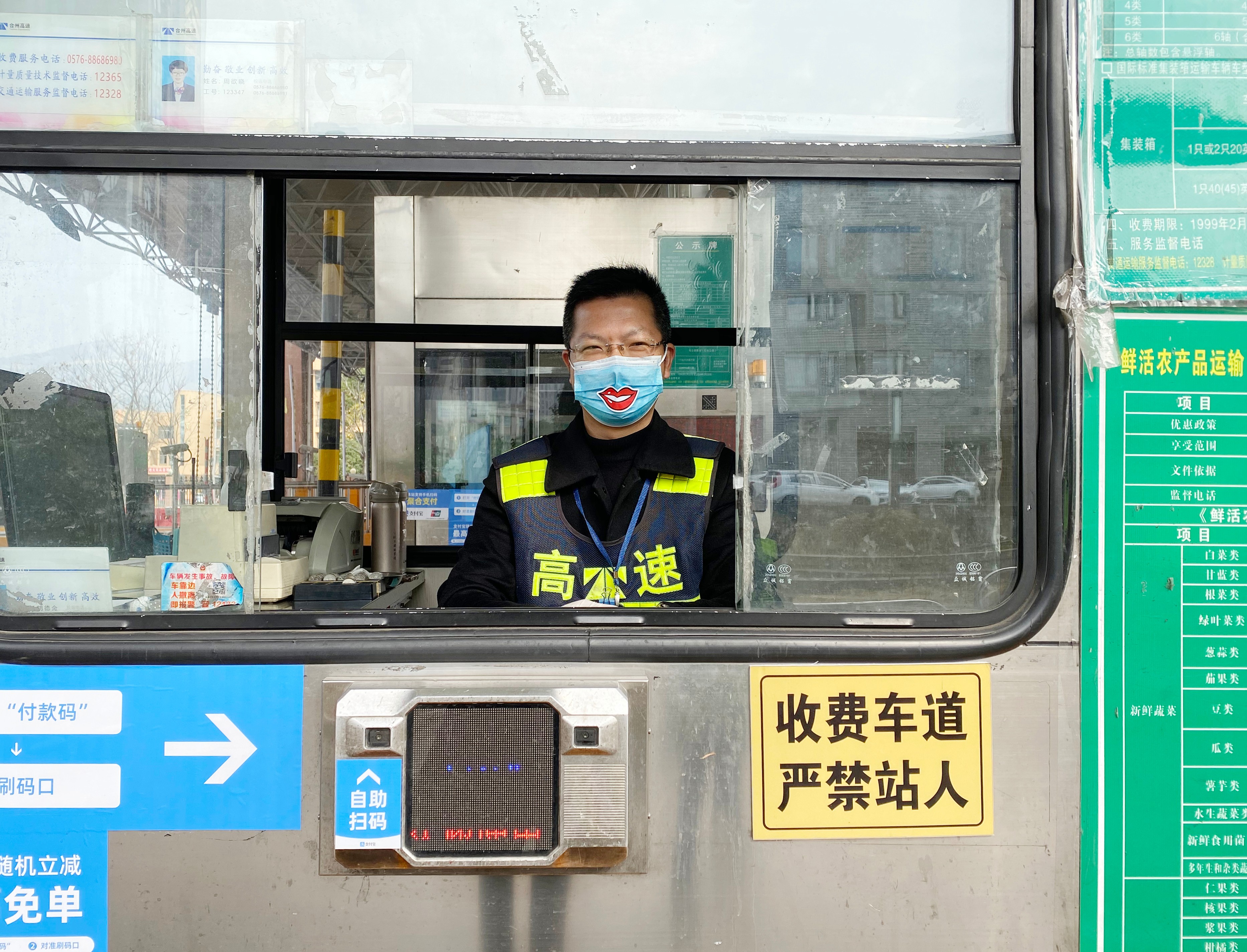 我“形”我秀,文明服務(wù) “你的口罩好可愛,好特別”。 新春將近,這聲音來自廣大司乘,縈繞在臺州收費所崗?fù)?。雖然疫情形勢依舊嚴峻,但是暖心文明服務(wù)更要堅守。收費員上崗時必須戴上口罩、手套等防護措施,臺州收費所堅持以微笑傳遞服務(wù),反對一層薄薄的防護疏遠與廣大司乘的距離,為了維護窗口形象,提升文明服務(wù),做到冷冬暖心,臺州收費所動腦動心出真招,將一枚枚笑容“印在”口罩上,一個個小小的笑臉,溫暖著來來往往司乘人員焦灼的心,在做好疫情防控工作的同時,也為收費服務(wù)增添一絲趣味。 臺州收費所送上一份安全、一心祝福、一抹微笑、一套年味兒,這個回家旅程您還冷嗎? 袁莉