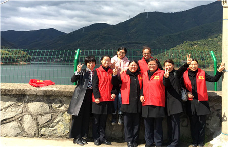 圖為臺州南女職工在水庫邊上合影