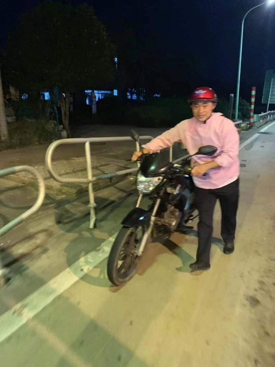 圖為誤入高速的人員 經(jīng)了解,車上坐的是在臺(tái)州打工的兩兄弟,中秋節(jié)廠里放假,突然想起回老家江蘇過(guò)節(jié),由于路況不熟,按導(dǎo)航提示,稀里糊涂就上了高速。上來(lái)后,發(fā)現(xiàn)路上車子既多又快,越開(kāi)感覺(jué)心里越是怕怕的,大晚上的也不知道該怎么走,看到有口子就急著下了。 得知情況的周冬子先對(duì)兩兄弟普及高速公路禁止摩托車行駛的交通法規(guī)知識(shí),隨后根據(jù)實(shí)際情況給他們推薦了一條相對(duì)便捷的國(guó)道路線,并建議他們節(jié)假日路上車輛較往常要多,為了安全起見(jiàn),最好選擇白天出行或者坐動(dòng)車。 兄弟倆表示今后不會(huì)再犯這樣的錯(cuò)誤,對(duì)該班長(zhǎng)的熱心幫助再三感謝。 周冬子