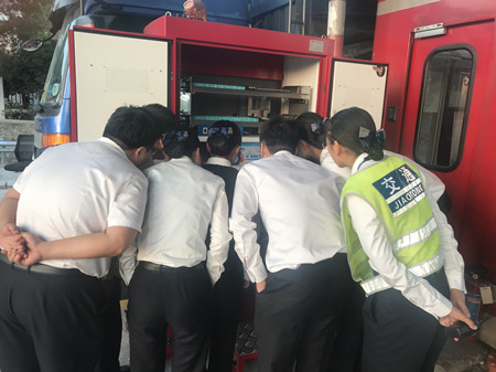 圖為工作人員在現(xiàn)場學習自動發(fā)卡機的操作功能
