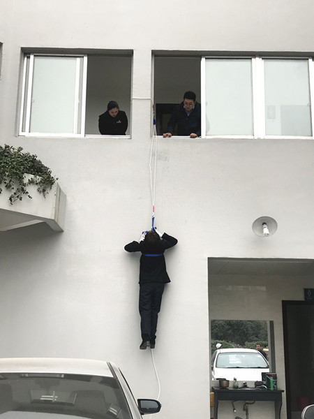 圖為高處逃生演練現(xiàn)場(chǎng) 理論培訓(xùn)結(jié)束后,溫嶺西收費(fèi)所隨即開展實(shí)地逃生演練,讓員工學(xué)習(xí)使用逃生繩從高處逃生的技能。在蔡教官的指導(dǎo)下,一名收費(fèi)員大膽地自我推薦,主動(dòng)嘗試此自救方法。 一切準(zhǔn)備就緒,該收費(fèi)員迅速爬上窗戶,利用逃生繩小心地沿著墻壁下滑,并順利落地。教官最后根據(jù)演練情況作點(diǎn)評(píng)。 此項(xiàng)技能有助于在火災(zāi)時(shí)多開辟一條逃生通道,減少人員傷亡。 通過此次全面的培訓(xùn)演練,溫嶺西收費(fèi)所將全力共抓消防安全工作,排除各類隱患。 鄭霞霞