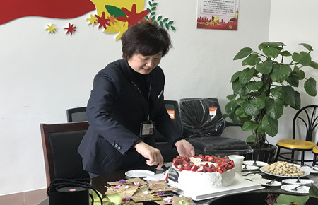 圖為陶秀英同志在歡送會現(xiàn)場切蛋糕 歡送會上,章海峰代表臺州高速,對陶秀英同志二十余年如一日為集團發(fā)展所付出的辛勞和貢獻表示了衷心感謝,預(yù)祝她退休生活豐富多彩,也希望她退而不休,常回“家”看看。同時號召年輕員工學(xué)習(xí)陶秀英身上傳承勤勤懇懇、認(rèn)真踏實的態(tài)度與精神,為征費管理共努力,為集團發(fā)展共拼搏。
