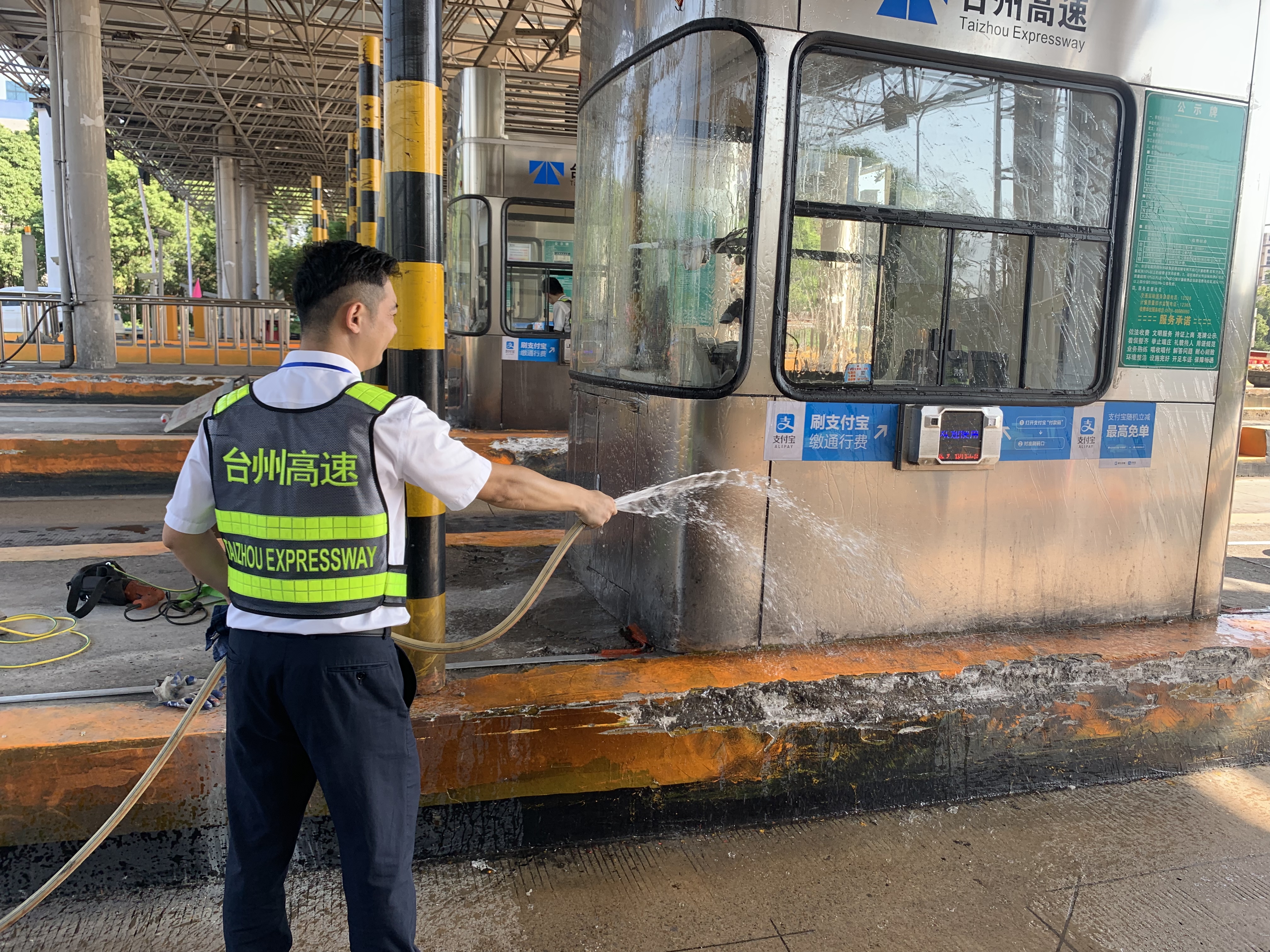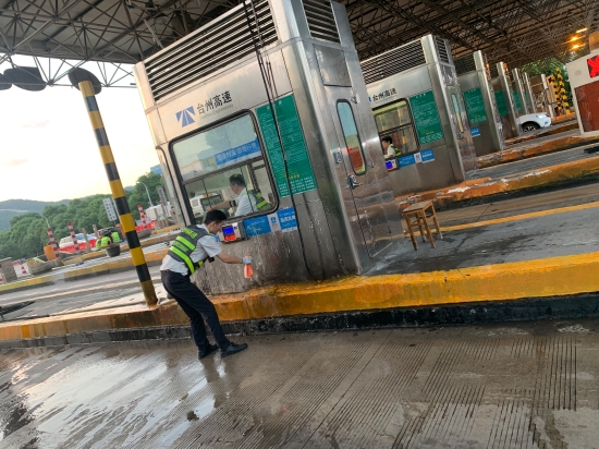 圖為工作人員打掃車道衛(wèi)生 此次環(huán)境衛(wèi)生大掃除本著徹底清理、不留死角的原則,以班組為單位,細(xì)分責(zé)任區(qū),明確保潔要求,限時清理,全所員工充分發(fā)揚不怕苦、不怕累的精神,重點對收費站內(nèi)外廣場、車道、崗?fù)?、島頭、邊溝、標(biāo)志標(biāo)牌等區(qū)域及設(shè)施設(shè)備進行了一次深度清潔。
