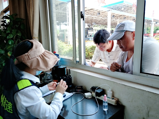圖為收費站人員幫過往司乘激活ETC設(shè)備