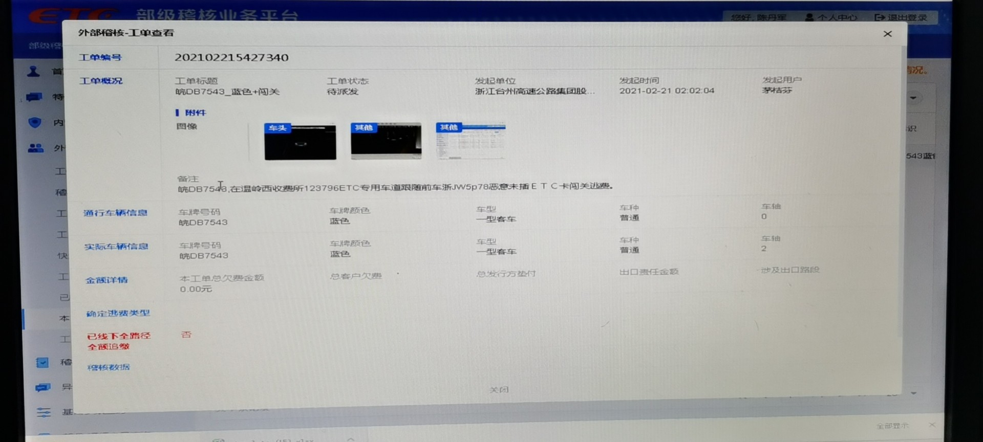2月20日,溫嶺西收費(fèi)所發(fā)生一起一輛小型客車在ETC車道緊跟前一輛車出站,借此偷逃通行費(fèi),被工作人員發(fā)現(xiàn)后立即上報監(jiān)控,發(fā)起工單,追繳該車通行費(fèi)。