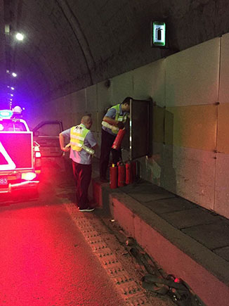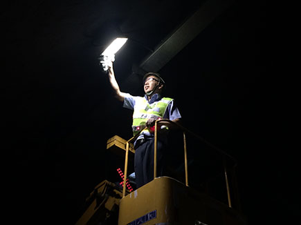 圖為工作人員更換滅火器 因隧道內(nèi)車輛往來密集,氣體和灰塵難以散發(fā),容易沉積在隧道壁、監(jiān)控攝像頭及照明燈上形成污漬,此日積月累削弱了隧道內(nèi)的照明效果,影響駕駛員視線,存在安全隱患。對此,黃土嶺隧道所組織人員對隧道進行清洗和維修保養(yǎng)設(shè)備,全面排查各類安全隱患。執(zhí)勤隊利用登高車逐一清潔寧向左洞內(nèi)監(jiān)控攝像頭及照明燈,檢查消防設(shè)施狀況,統(tǒng)一對滅火器進行掛牌完善記錄,并協(xié)同維養(yǎng)中心檢修溫向隧道照明系統(tǒng)線路,修復(fù)損壞的燈具。 經(jīng)過清洗保養(yǎng)后的黃土嶺隧道,燈光通明,監(jiān)控清晰,有效地保障了隧道的安全暢通。 毛譯聆