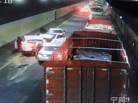 12月22日下午3:00,黃土嶺寧向隧道出口外,因兩輛大貨司機在行駛途中產(chǎn)生摩擦,不顧他人安危在川流不息的高速車道上大打出手,其中一名司機還在車道上逼停另外一輛大貨車,造成后續(xù)車輛被堵在隧道內(nèi),間接導致四輛轎車追尾。
