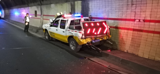 圖為事故車輛 憑著多年積累下來的經(jīng)驗,洪瑞立刻判斷該車肯定存在異常情況,趕緊使用巡邏車內(nèi)的廣播反復(fù)呼叫,提醒貨車靠邊停車檢查,并將此情況反饋到中控室。然而貨車并未停下,為了確保貨車的安全,巡邏車開啟警示燈,拉起警報,給該車預(yù)警。 當(dāng)車行駛到馬鬃嶺隧道時,執(zhí)勤隊員從后視鏡發(fā)現(xiàn)后方有另一輛大貨車正快速逼近,沒有任何減速的傾向。這一刻,留給他們的只有兩個選擇:往左拐,時間緊張,一個處置不當(dāng),會出現(xiàn)尾部被撞后再次追尾前方貨車的前后夾擊險情,后果不堪設(shè)想;或者在被撞時的一瞬間采取正確的應(yīng)對措施,在操作時絕不能有一丁點的遲疑,逃生的時機僅有幾秒鐘。 生死存亡的緊急關(guān)頭,隊員們及其冷靜,被猛烈撞擊時,沒有急踩剎車、誤打方向,在左側(cè)車道有車的情況下,處置正確、分毫不差,往右車道偏移了10來米,成功從夾縫中逃脫,化解了這次險情。巡邏車被撞后,兩名受傷隊員不顧傷痛,仍然堅持下車保護現(xiàn)場并對來往車輛預(yù)警,預(yù)防二次事故的發(fā)生,直到后續(xù)救援力量到達。 此次事故造成三車追尾,兩名執(zhí)勤隊員輕微受傷,雖然巡邏車損失慘重,但是因為執(zhí)勤隊員高度的工作責(zé)任心和對險情的正確判斷處置,才未造成任何司乘人員的傷亡,也未影響到隧道正常通行。 據(jù)隧道所員工了解,該貨車司機可能是凌晨疲勞駕駛沒有聽見巡邏車預(yù)警,在此提醒廣大司機,車輛如果發(fā)生故障,車靠邊、人撤離,即報警,切忌疲勞駕駛! 盧祖理