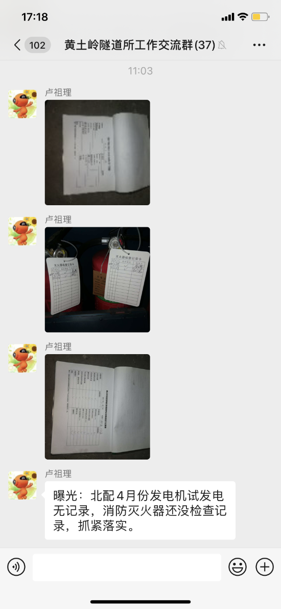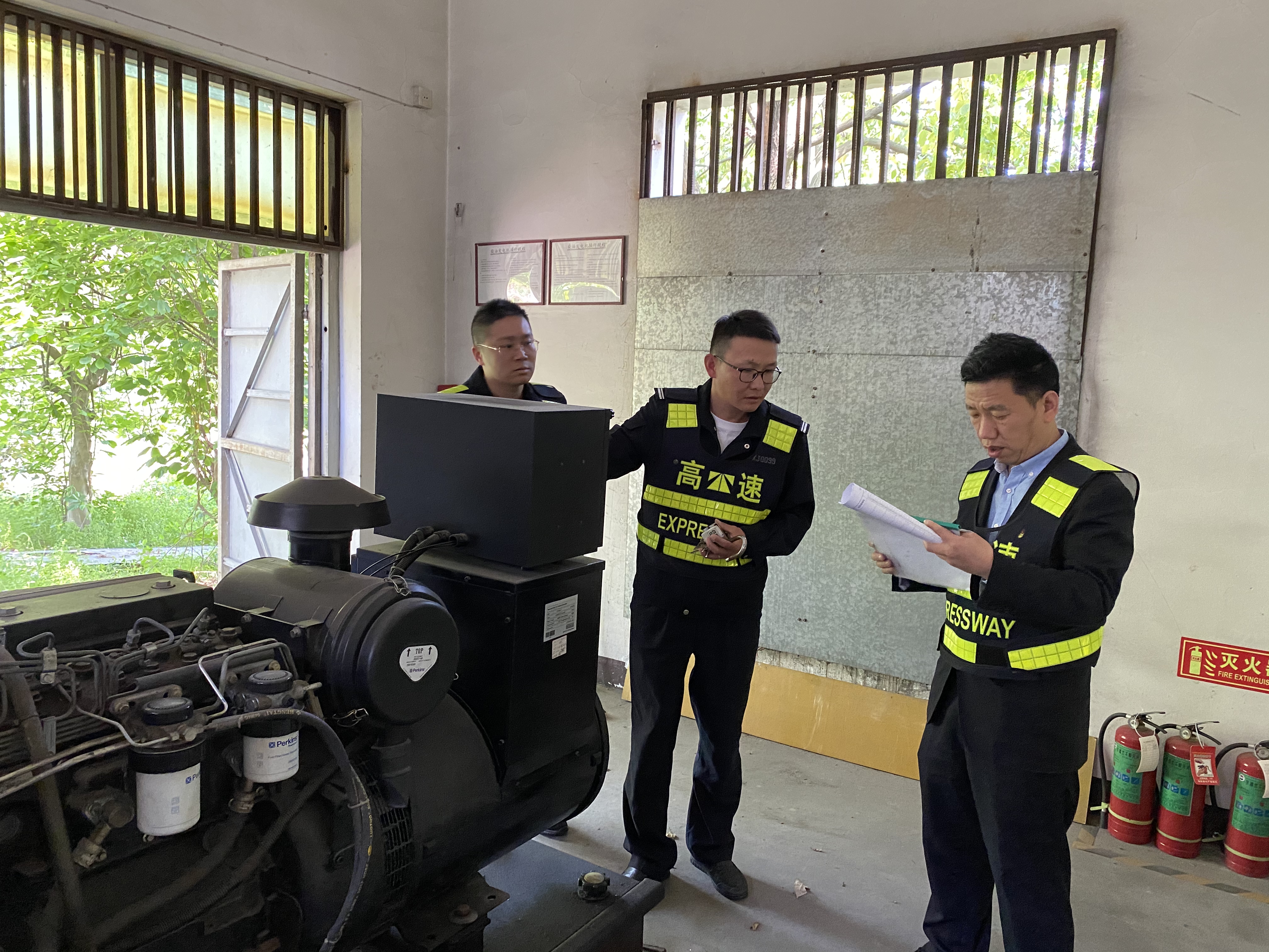 圖為檢查配電柜現(xiàn)場(chǎng) 目前,全國(guó)高速公路仍處于免費(fèi)通行階段,黃土嶺隧道日流量高達(dá)6.3萬輛,日趨常態(tài)化的大流量成為隧道所安全管理的最大挑戰(zhàn)。為保障隧道行車安全,道路暢通,該所持續(xù)加強(qiáng)管理,在“五一”節(jié)前,重點(diǎn)對(duì)配電室、發(fā)電房進(jìn)行了線路排查,對(duì)發(fā)電機(jī)進(jìn)行日常維護(hù)與保養(yǎng),保證在遇突發(fā)停電情況時(shí),設(shè)備能夠不斷電運(yùn)行。還對(duì)滅火器、消防泵等應(yīng)急設(shè)備進(jìn)行檢查,確保有效應(yīng)對(duì)突發(fā)事件。以及查看了隧道內(nèi)的照明系統(tǒng)、警示標(biāo)志等設(shè)施和排查房建方面有無脫落風(fēng)化發(fā)生,確保雨季前的安全生產(chǎn)。