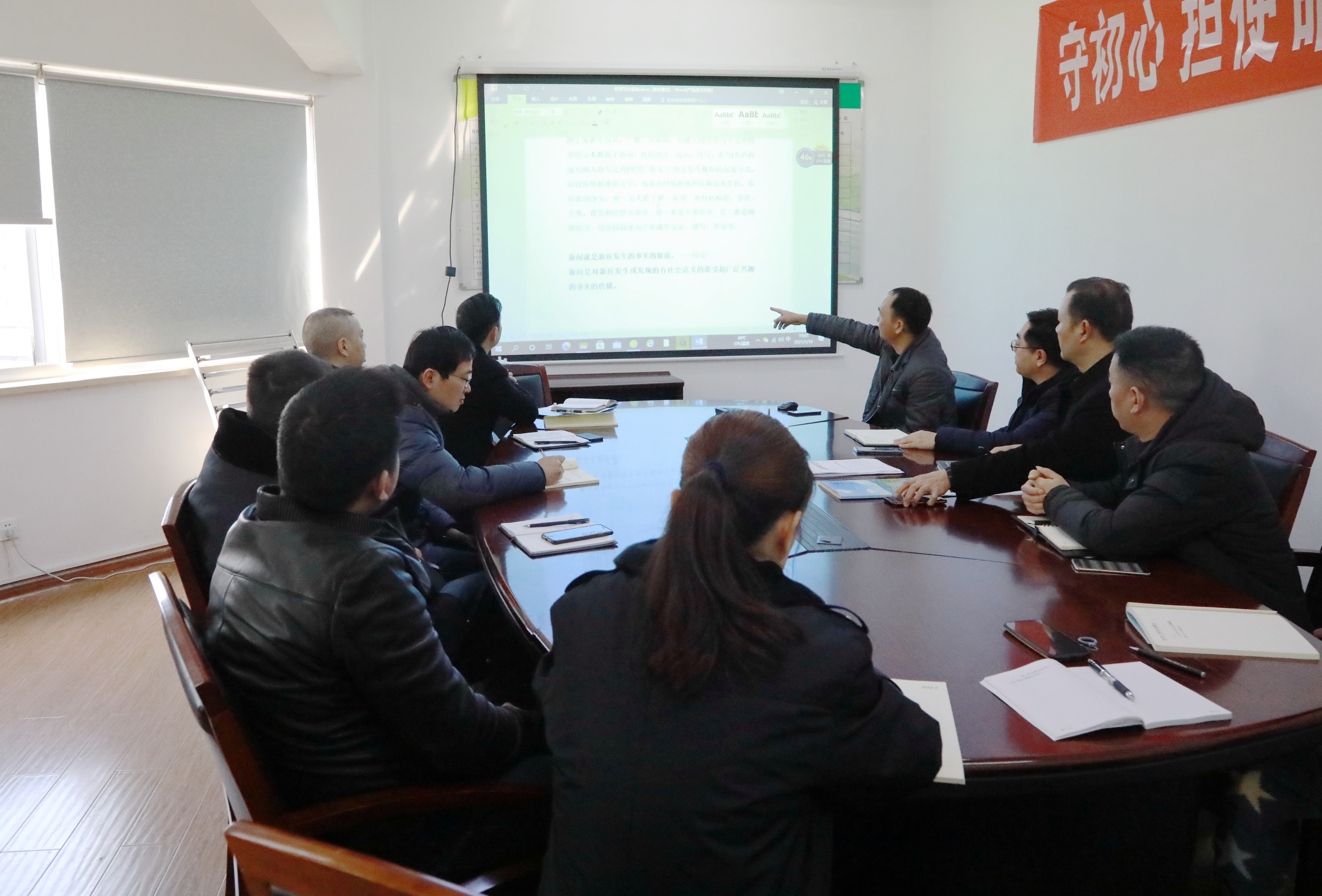 1月19日上午,黃土嶺隧道所邀請臨海市新聞傳媒集團(tuán)傳媒文化發(fā)展中心編輯、播音員朱永俊到所里指導(dǎo)新聞寫作,同時(shí)邀請辦公室信息宣傳人員前來交流。會議由該所副所長應(yīng)錦清主持,執(zhí)勤隊(duì)長及所內(nèi)7名信息員參與培訓(xùn)。