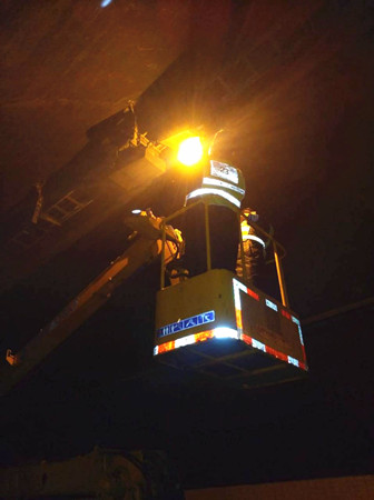 1月31日上午,該所執(zhí)勤隊員在隧道巡邏時發(fā)現溫向快車道一盞照明燈被超高車刮蹭而導致燈罩損壞,燈頭及組件掛落蕩在橋架下,很容易造成二次事故而引起人員傷亡。一發(fā)現該隱患,隊長李新波立即向所長李立巍報告險情,馬上聯系高速交警、指揮中心人員,要求立即封道搶修。 大溪嶺隧道所在險情發(fā)生的第一時間作出緊急措施,兩名執(zhí)勤隊員在溫向隧道洞口卡口預警,李立巍向維養(yǎng)中心調來登高車,三名電工隨即進隧道維修脫落的燈罩。經過25分鐘的快速搶修,目前設備已能正常使用,隧道恢復通行。 李新波