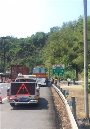 4月25號9時(shí)10分,大溪嶺隧道所巡邏車發(fā)現(xiàn)一輛大客車在應(yīng)急車道上緩慢行駛,隨即停在應(yīng)急車道隨意下客,行人不顧危險(xiǎn)肆意穿越隔離帶。