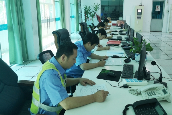 此次測試題庫內(nèi)容包括中控、電工、安保等專業(yè)知識,分三批次進(jìn)行。隊員在做完隧道業(yè)務(wù)知識測試后,繼續(xù)各崗位“模擬操作”測試。中控測試模擬隧道(寧向或溫向)發(fā)生火災(zāi)、追尾、拋錨等事故,按照預(yù)案進(jìn)行操作,以此檢測中控員工作中熟悉事故處置流程的程度和中控設(shè)備操作使用的能力;電工根據(jù)高桿燈升降電路控制原理圖、以此檢測電工專業(yè)水平,增加電工的基礎(chǔ)知識,提高維修能力;安保測試消防水帶的兩帶連接,進(jìn)一步提高隊伍執(zhí)勤訓(xùn)練水平和滅火救援能力。