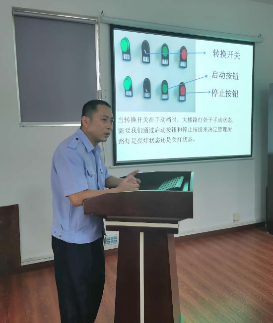 末伏高溫持續(xù) “每月一講”熱度不退 “末伏”到來,酷暑高溫不退。8月18日,大溪嶺隧道所開展“每月一講”電工業(yè)務(wù)培訓(xùn)。此次培訓(xùn)由該所電工技師湯寧光主講《路燈控制線路》。