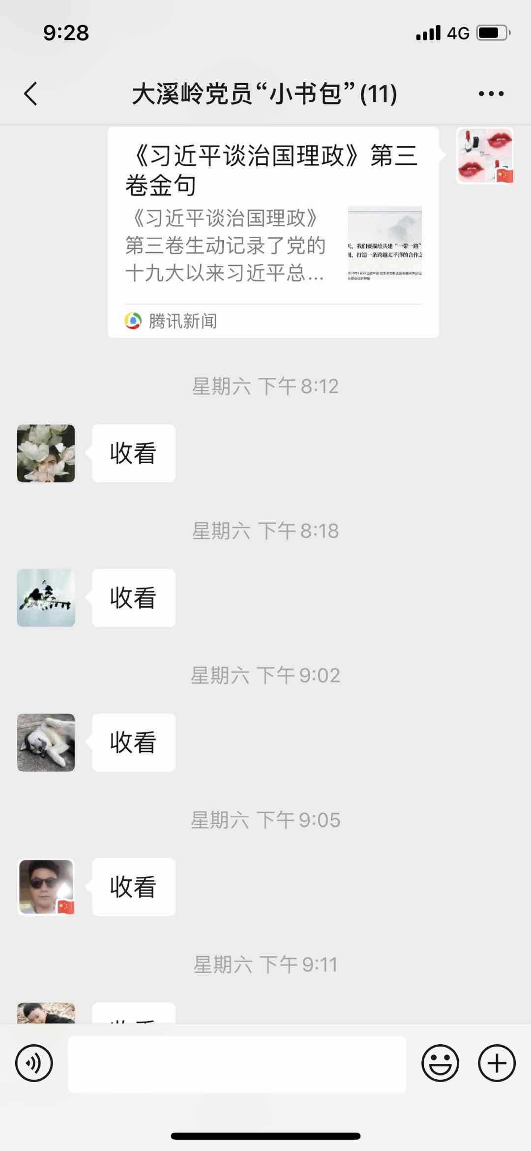 黨員“小書包”的建立,進(jìn)一步拓展和暢通了聯(lián)系黨員的信息渠道,可以24小時在線聯(lián)系黨員、征求意見,能在線進(jìn)行實時回復(fù)和互動,同時可以通過微信群及時發(fā)布上級文件精神、習(xí)近平總書記重要講話內(nèi)容、學(xué)習(xí)教育心得、會議通知等等,進(jìn)一步提高學(xué)習(xí)教育效能。 黨員“小書包”的建立,讓黨員們的學(xué)習(xí)內(nèi)容不受書本限制,學(xué)習(xí)教育不受地域、場所的限制,在繁忙的工作學(xué)習(xí)之余,大家可以在微信群中了解當(dāng)前時下最新的學(xué)習(xí)內(nèi)容、信息和動態(tài),相互學(xué)習(xí),交流體會,無形提升自己的政治素養(yǎng)。 黨員“小書包”的建立,實現(xiàn)了黨組織和黨員之間“親密”、“即時”、“微距”的接觸,加強(qiáng)了黨員同黨組織之間的信息互動。通過“小書包”的建設(shè),大溪嶺學(xué)習(xí)教育時刻保持鮮活的生命活力和時代氣息,形成了“輕松自主學(xué)習(xí)、實時互動交流”的良好學(xué)習(xí)氛圍,提供了更好的動力。