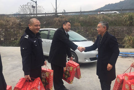 圖為公司董事長謝文君在一線慰問 每到一所,謝文君都向在崗?fù)?nèi)收費和監(jiān)控室內(nèi)的員工送上新春祝福,道聲:“辛苦了!”詢問值班安排,了解車流量情況。當(dāng)?shù)弥?dāng)天車流量特別大時,謝文君要求各收費所即使是小型客車免費時間,也要合理安排上崗員工休息、吃飯時間,增強(qiáng)收費力量,加強(qiáng)各所間交流,及時掌握車流量變化,維護(hù)好通行秩序,確保安全暢通。要求各隧道所加強(qiáng)監(jiān)控,時刻關(guān)注隧道內(nèi)車流變化,及時提醒過往司機(jī)減速慢行通過隧道,確保過往司乘人員過個祥和平安的春節(jié)。 此外,謝文君還到食堂、宿舍查看員工在節(jié)日期間的飲食和住宿情況。了解在崗員工個個精神飽滿、熱情洋溢,謝文君感到欣慰,鼓勵大家繼續(xù)努力,提供優(yōu)質(zhì)的文明服務(wù),樹好公司形象。