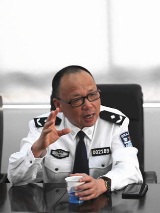 圖為高速交警支隊(duì)長(zhǎng)陳國(guó)民在會(huì)上講話