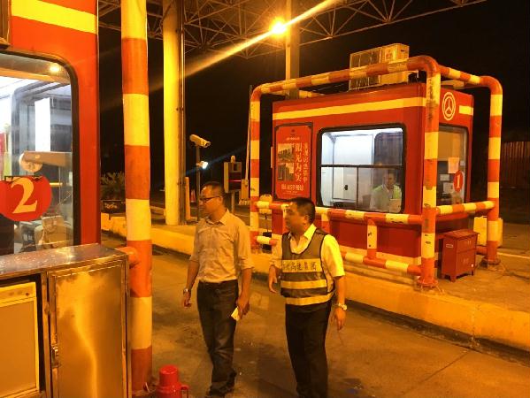 公司副總經(jīng)理章海峰深夜到臺(tái)州南收費(fèi)所檢查 節(jié)假日車輛通行情況