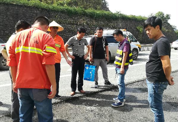 10月10日,集團(tuán)總工程師江輝帶領(lǐng)工程養(yǎng)護(hù)部人員到臨海南匝道病害現(xiàn)場(chǎng)檢查。