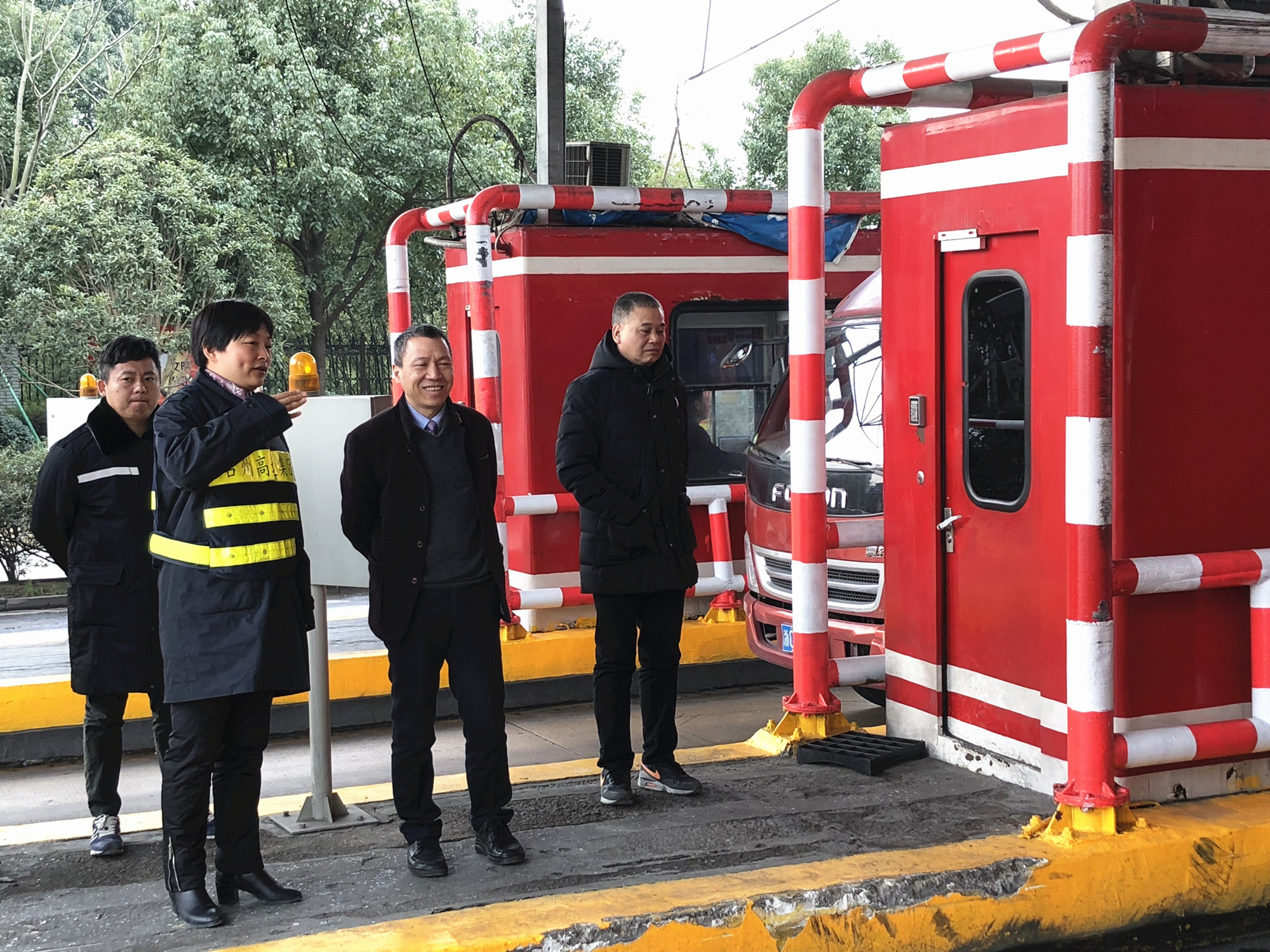 圖為公司總經(jīng)理張建平在溫嶺西收費站檢查