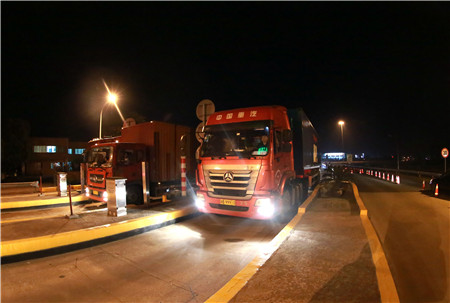 臺(tái)州南、溫嶺西收費(fèi)所,分流9點(diǎn)開(kāi)始,由于夜間通行貨車(chē)居多,每輛需計(jì)重收費(fèi),且?jiàn)A雜綠農(nóng)車(chē),情況復(fù)雜,分流1個(gè)小時(shí)后出口車(chē)道已排成車(chē)燈長(zhǎng)龍,壓力巨大?!奥房趨f(xié)警一定要守住第一道防線,不能讓任何車(chē)輛進(jìn)入!”富有經(jīng)驗(yàn)的所長(zhǎng)王益民已在車(chē)道上與交通協(xié)管員一起指揮疏導(dǎo)交通了。從晚上10點(diǎn)到凌晨6點(diǎn),持續(xù)奮戰(zhàn)8個(gè)小時(shí),在有限的具有稱(chēng)重能力車(chē)道的情況下,臺(tái)州南、溫嶺西共完成了5千多輛車(chē)的收費(fèi)工作,流量相比平時(shí)增加一倍。