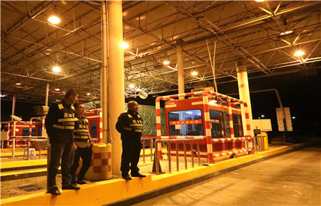 當晚20時許,一切整裝就緒,分流正式開始。瞬間,原來還空曠的臨海南收費廣場車輛絡繹不絕,轟鳴聲不絕于耳。車流各收費所班子成員全數(shù)在崗管控現(xiàn)場,當班班組一如既往地沉穩(wěn)應對,微笑接卡、唱收唱付、禮貌迎送,行政班人員輪流值班,時刻準備旁站和補崗。