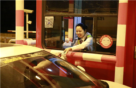圖為收費員為司乘人員提供文明服務
