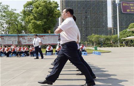 短短的30余天,從停止間四面轉(zhuǎn)法到三個(gè)步伐動作,每項(xiàng)內(nèi)容,他們都練得有模有樣。這是團(tuán)隊(duì)從磨合走向融合的過程,也是鐵軍式精氣神逐步抵達(dá)和不斷提升的過程。(圖7)