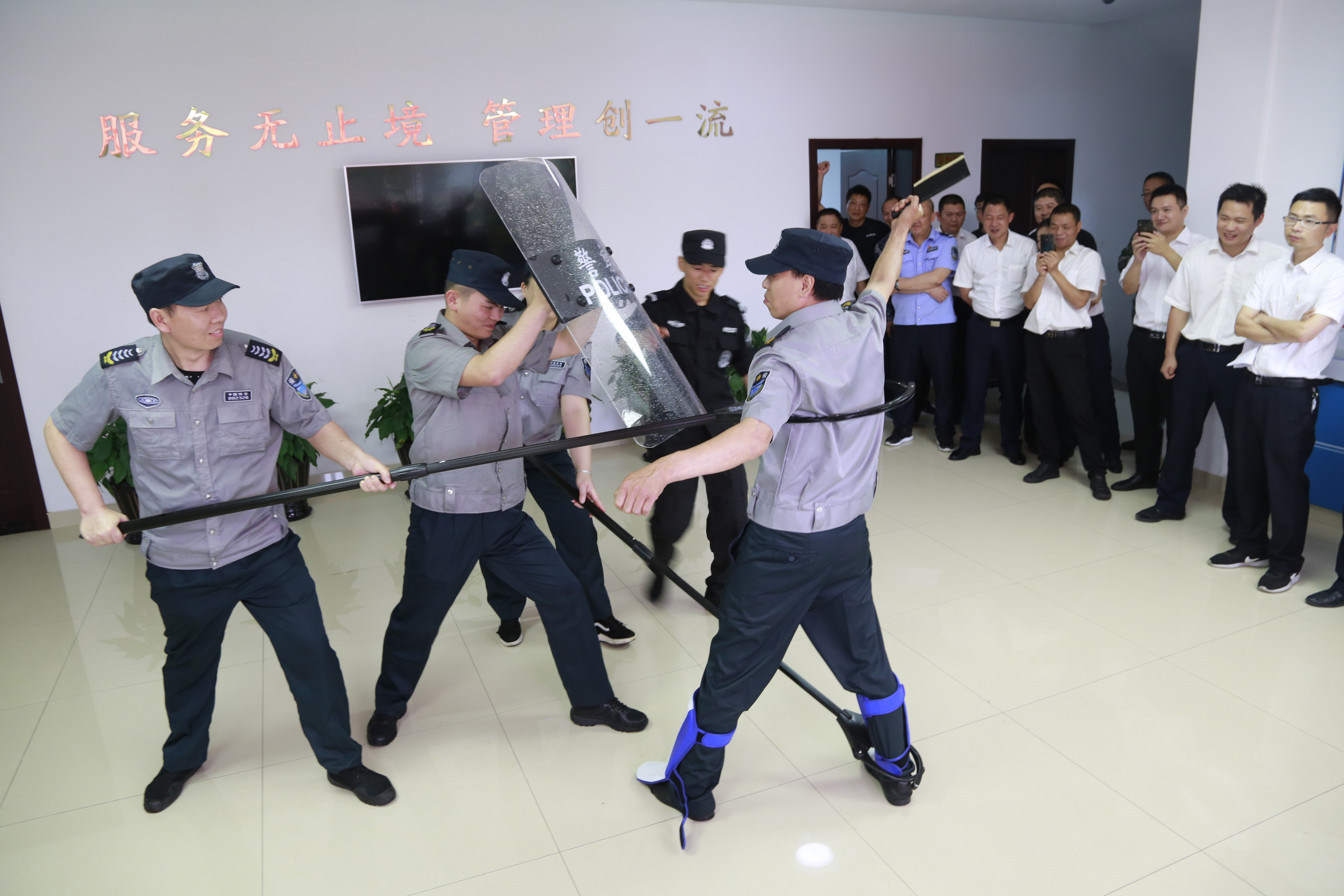 演練開(kāi)始前,盧尚明對(duì)防爆盾牌、防爆鋼叉、抓捕器、警棍等各類防爆器材的功能和使用方法進(jìn)行一一講解,并示范操作,以及帶領(lǐng)大樓浙師大印象物業(yè)人員現(xiàn)場(chǎng)練習(xí)器械使用。