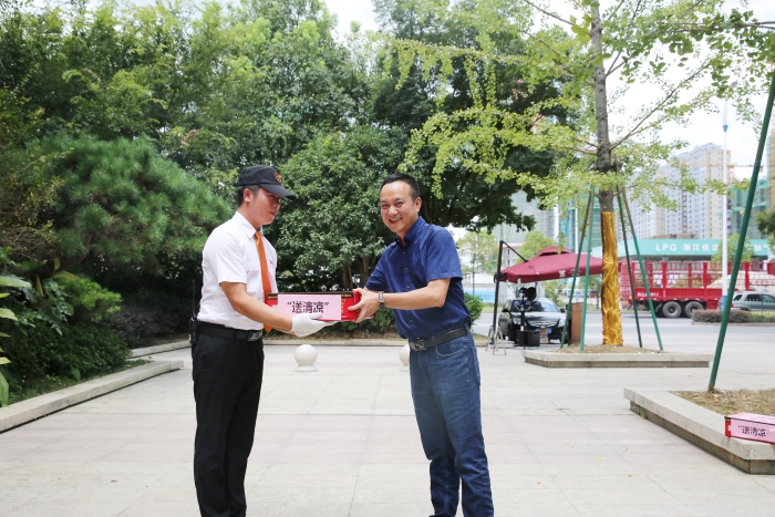 “這么熱的天氣,大家都辛苦啦!感謝你們的辛苦付出,高溫工作,一定要注意避免中暑?!奔瘓F副總經(jīng)理陳保衛(wèi)、羅小將、工會主席項義超、征費部負責人等相關(guān)人員,到房產(chǎn)公司、大溪嶺隧道所、溫嶺西、臺州南等收費所,為一線員工送上消暑物資,慰問堅守在酷暑下的工作人員。