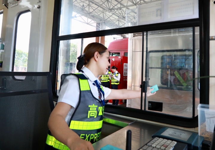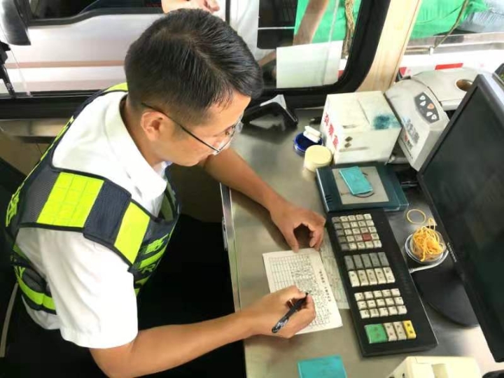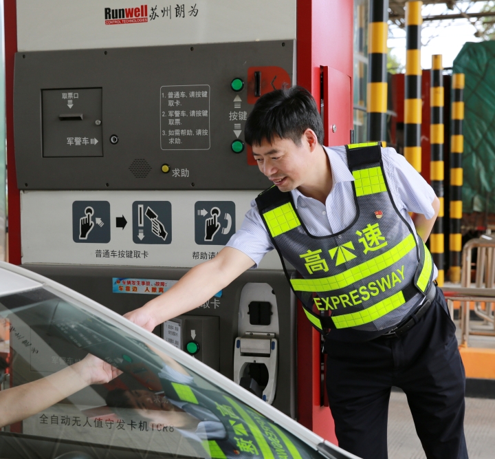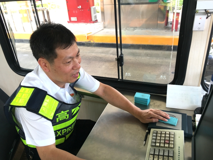 而在對面發(fā)卡的安全總監(jiān)項(xiàng)同富正襟危坐,等待著車子的駛?cè)耄?/span>“記住動(dòng)作就忘記微笑,笑起來又忘記要說什么......真有點(diǎn)手忙腳亂的,做好收費(fèi)員,不容易?!?/span>