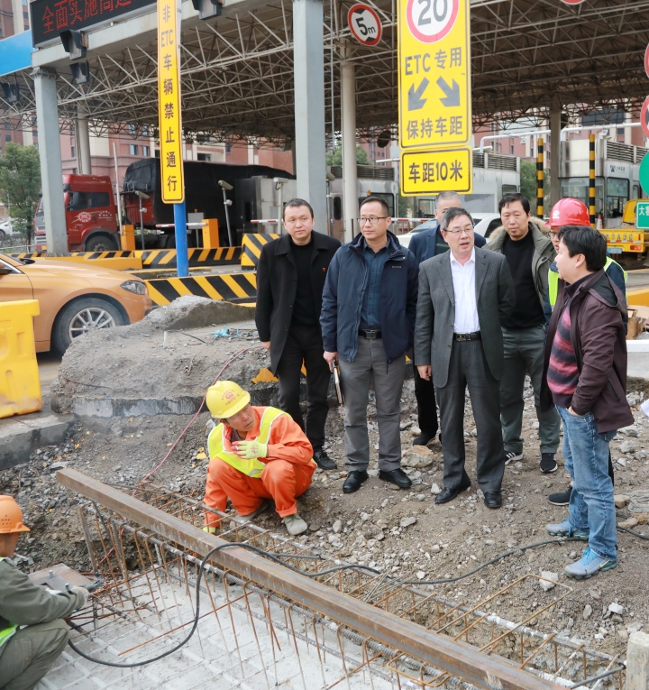 圖為陳文波在收費所混合車道施工現(xiàn)場了解施工進(jìn)展情況