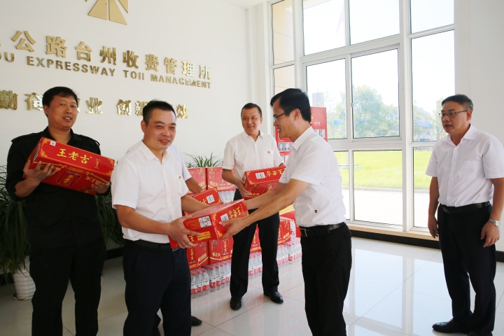 市交投集團(tuán)總經(jīng)理金寶敏到臺(tái)州高速沿線收費(fèi)所送清涼 8月13日上午,臺(tái)州交投集團(tuán)黨委副書記、副董事長、總經(jīng)理金寶敏一行到臺(tái)州高速沿線收費(fèi)所送清涼,看望慰問高溫天堅(jiān)守崗位的一線工作人員。臺(tái)州交投集團(tuán)黨委委員、副總經(jīng)理,臺(tái)州高速集團(tuán)黨委書記、董事長、總經(jīng)理陳文波,臺(tái)州高速集團(tuán)副總經(jīng)理章海峰陪同慰問。