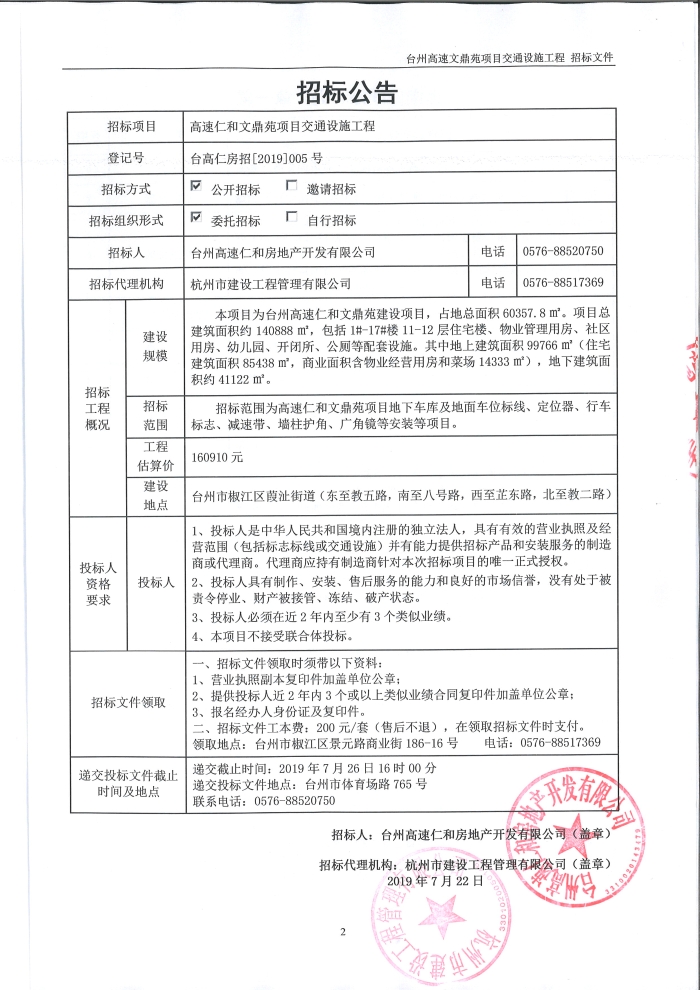 高速仁和文鼎苑項(xiàng)目交通設(shè)施工程招標(biāo)公告