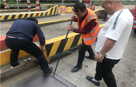 圖為工作人員檢修車道 面對大分流,我們準備好了。 堅持問題導向,突出重點出實效。臨海南收費所成為主分流點,但是該所平時流量小,出口車道僅為三個,而且人員相對不足。如何解決?征費部牽頭,召集各收費所針對問題作了動員部署。應對措施主要為“設備先行,人員輔之”。其一臨海南進口車道將改為出口,增加出口車道;其二,人力支援,其他三個收費所充分發(fā)揮協作精神,每班次抽調人員支援充實臨海南收費力量,協助分流保暢。
