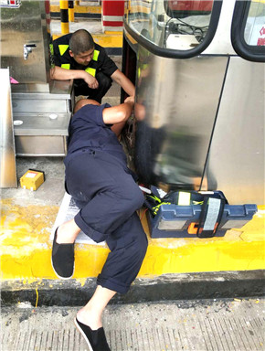 面對(duì)新的挑戰(zhàn),中心隊(duì)員毫不畏懼,憑著嫻熟的技能,做網(wǎng)線、接電源、找插板、聯(lián)系授權(quán)......忙得連喝水時(shí)間都沒有,他們或彎腰或半蹲,甚至整個(gè)人趴到了地面上就是為了找一根相應(yīng)的數(shù)據(jù)線和配置端口。經(jīng)過共同努力,新架設(shè)的收費(fèi)電腦一次性通過了過車測試,出口車道瞬間增加一個(gè),三車道成了四車道。