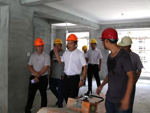 圖為集團(tuán)副總經(jīng)理羅小將在文鼎苑工地慰問施工人員