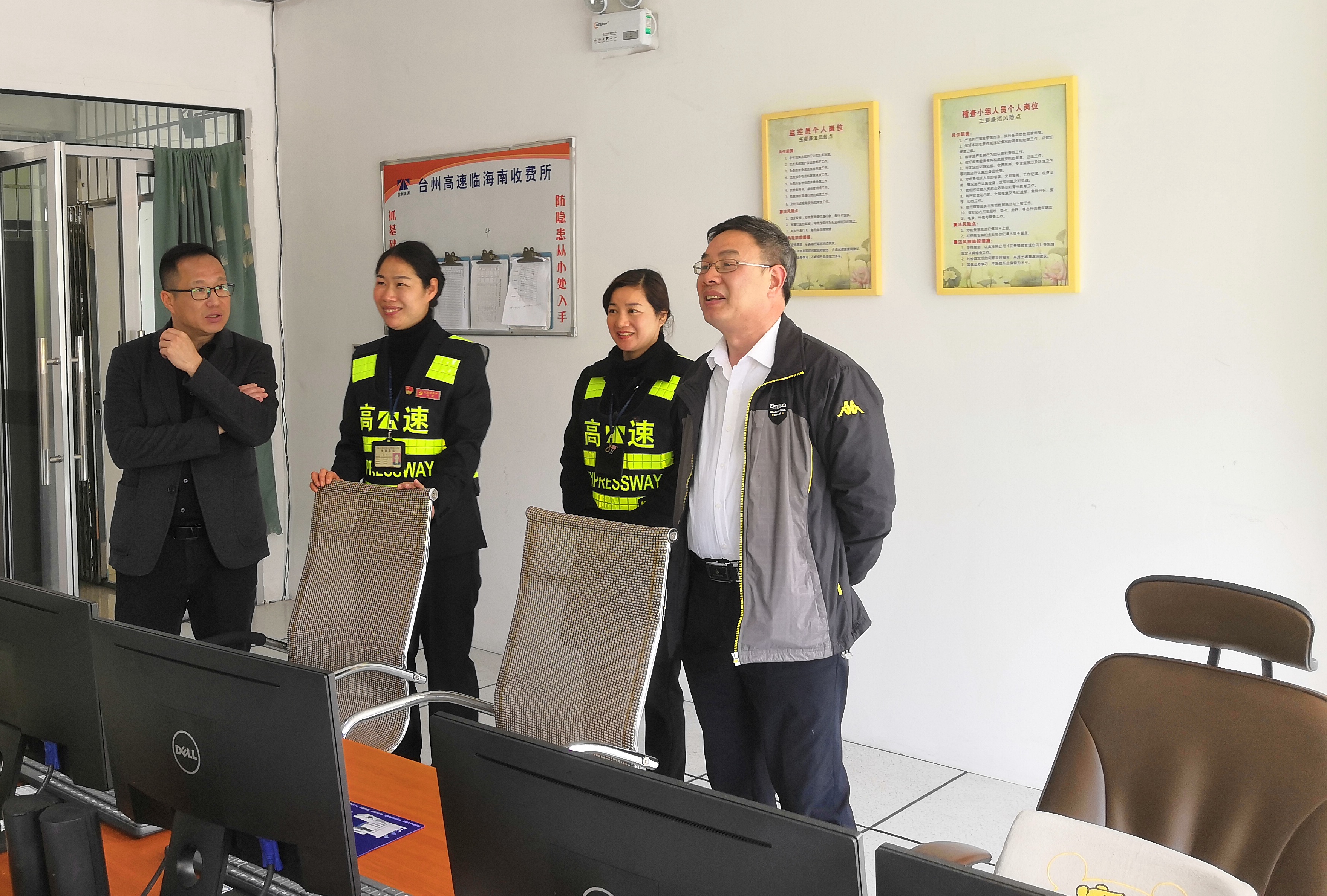 在各收費所,陳文波看望慰問清明節(jié)期間仍然堅守在崗位上的員工,查看收費崗亭內(nèi)外收費環(huán)境,詢問了解收費員的日常工作安排和有無突發(fā)應急情況。他要求值班人員及時掌握車流量變化,做好安全保暢通工作,妥善處置突發(fā)事件,確保所轄路段平穩(wěn)有序。 隨后,陳文波走訪大溪嶺隧道所,了解該所日常工作情況。在監(jiān)控室,他叮囑工作人員隨時注意隧道內(nèi)的通行情況,如發(fā)現(xiàn)問題及時報告,做好應對處置工作。