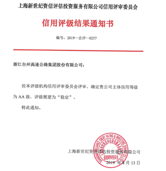 9月19日,公司順利收到新世紀評級公司AA級的主體信用等級通知書,這是公司繼2017年獲得東方金誠評級公司AA級主體評級后獲得的第二個AA級評級。